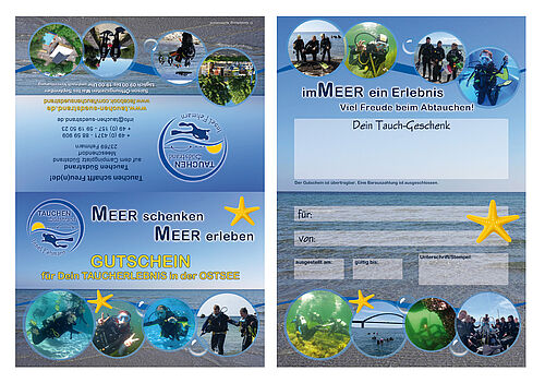 Vom Schnuppertauchen über Tauchkurse bis hin zu Tauchgang-Paketen oder auch Geldsummen kannst Du bei "Tauchen Südstrand" Gutscheine erhalten. Such Dir einfach ein Geschenk aus und kontaktiere uns.