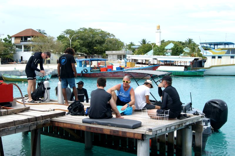 Die Tauchbasis Murakabay Maldives liegt im Herzen der kleinen Insel. Die Jungs um Yakko Ahmed stammen von der Insel und kennen die besten Plätze im Atoll, die mit einem der Speedboote angefahren werden. Alle Guides im Team sind erfahrene Taucher und bieten einen professionellen, guten Service und machen mit ihrer coolen Lebensart jeden Tauchgang zu einem entspannten Abenteuer. Die Tauchgangspreise sind hier durchaus gut bezahlbar. Noch besser für Freunde von Tauchen Südstrand, denn wir konnten auch hier 10% Discount vereinbaren. Einfach unseren Stempel im Logbuch zeigen.