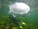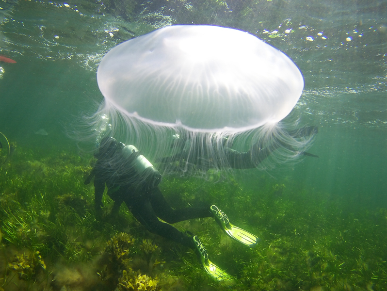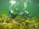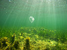Unser Hausriff ist mit 3 bis 5 Metern maximaler Wassertiefe zwar flach, bietet aber einen herrlichen Bewuchs und damit auch viele Plätze und Verstecke für Kleinlebewesen unter Wasser. Der sandige und kieselige Boden ist abwechslungsreich von großen Seegraswiesen und Algenformationen sowie kleineren Findlingen bedeckt. Neben jeder Menge Krabben, Seenadeln, kleinen Garnelen und Schirmquallen sind Plattfische, Stichlinge und mit gutem Auge auch Schnecken und Seesterne zu finden. Speziell Nachttauchen wird hier zur Entdeckungsreise.