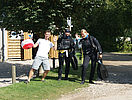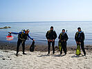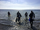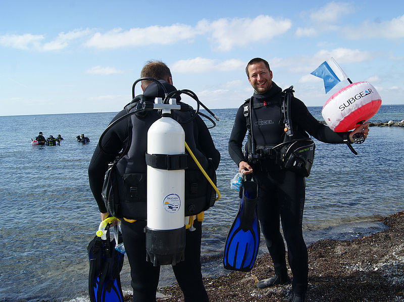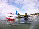 Da wir am Strand nicht alleine sind, ist besonders hier im Flachwasser das Mitführen einer Markierungsboje pro Buddy-Team Pflicht. So kommen andere Wassersportler wie Surfer, Sportboote oder Jetski uns nicht zu nahe.