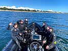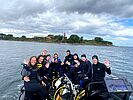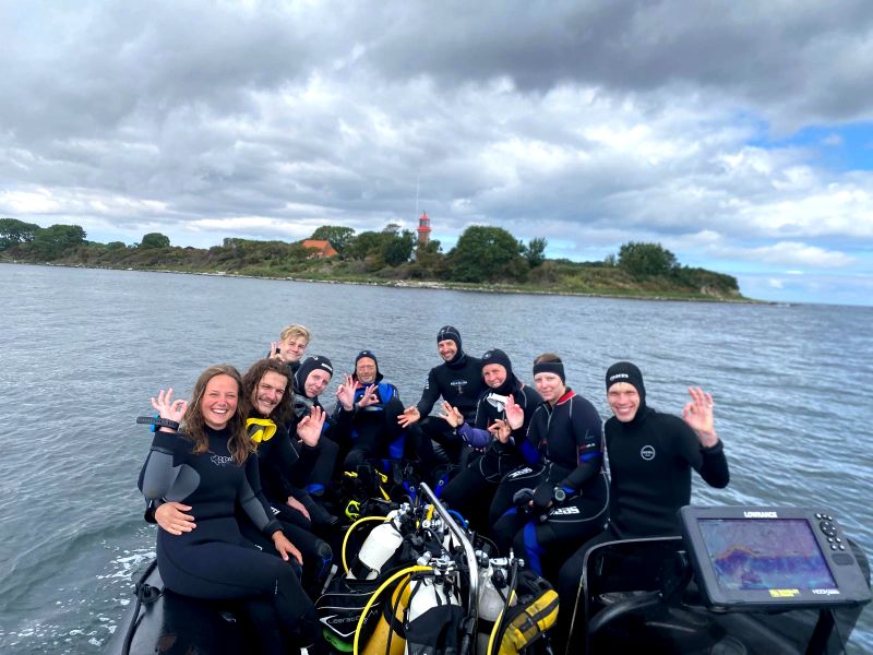 Unsere HOPE, ein 7,30m langes Schlauchboot, bietet bis zu 10 Tauchern viel Platz und ist zudem mit Flaschenreck und großer Leiter für einen mühelosen Wiedereinstieg ausgestattet. Auch für das bequeme An- und Ablegen der Ausrüstung ist ausreichend Raum vorhanden. Mit einem neuen 150PS starken Mercury Motor sind wir auf der Ostsee flott unterwegs. Das GPS Echolot bringt uns zielgenau zu den Wracks. Allein die Fahrt ist schon ein Vergnügen.