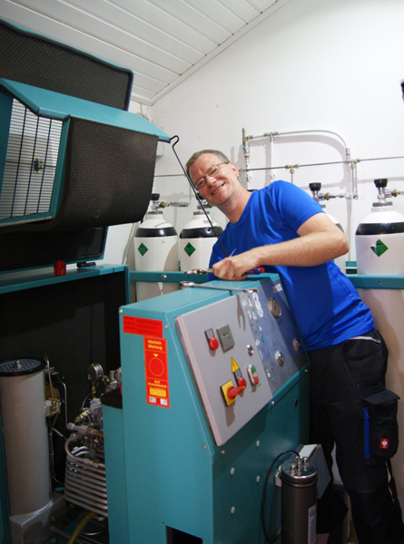 Mit unserem leistungsstarken BAUER Kompressor MV 120-5.5-2, der über 7 großvolumige Pufferflaschen verfügt, füllen wir Pressluftflaschen für 220 und 300 bar.